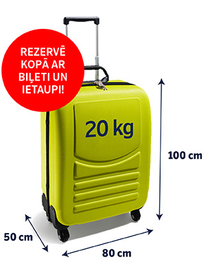• Economy CLASSIC: 1 bagāžas vienība (100 x 50 x 80 cm), maks. svars ir 23 kg.